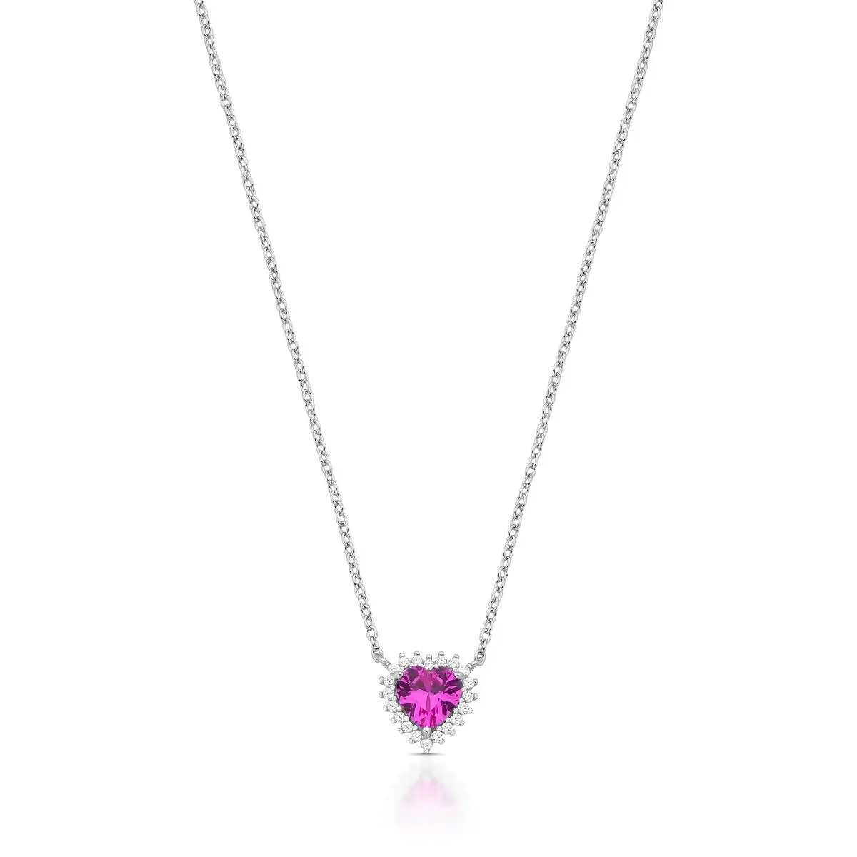 COLAR COM CORAÇÃO CRISTAL E ZIRCÔNIAS PRATA RODINADA