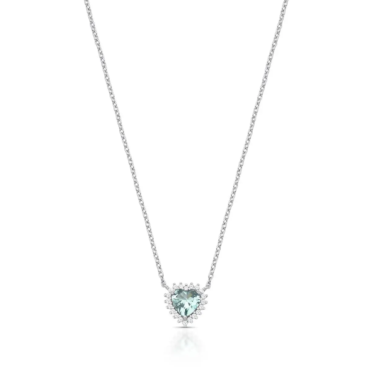 COLAR COM CORAÇÃO CRISTAL E ZIRCÔNIAS PRATA RODINADA